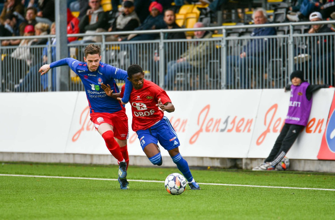 – Det er ikke lett å spille mot Vital Kaba. Det er vanskelig å få fra ham ballen, uten at dommeren blåser for frispark, sier Skeids midtstopper Hayder Altai. Altai spiller hele kampen med maske for å beskytte nesa som han brakk for en uke siden.